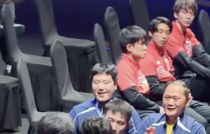 值得一提的是,王楚钦夺冠后曾特意跑到国乒的观战区与王励勤、教练组以及队友一一拥抱庆祝。日本男乒的观战区恰好在中国队旁边。当国乒庆祝胜利的时候,张本智和及其队友就在场边冷漠地看着,且连续看了数秒。
